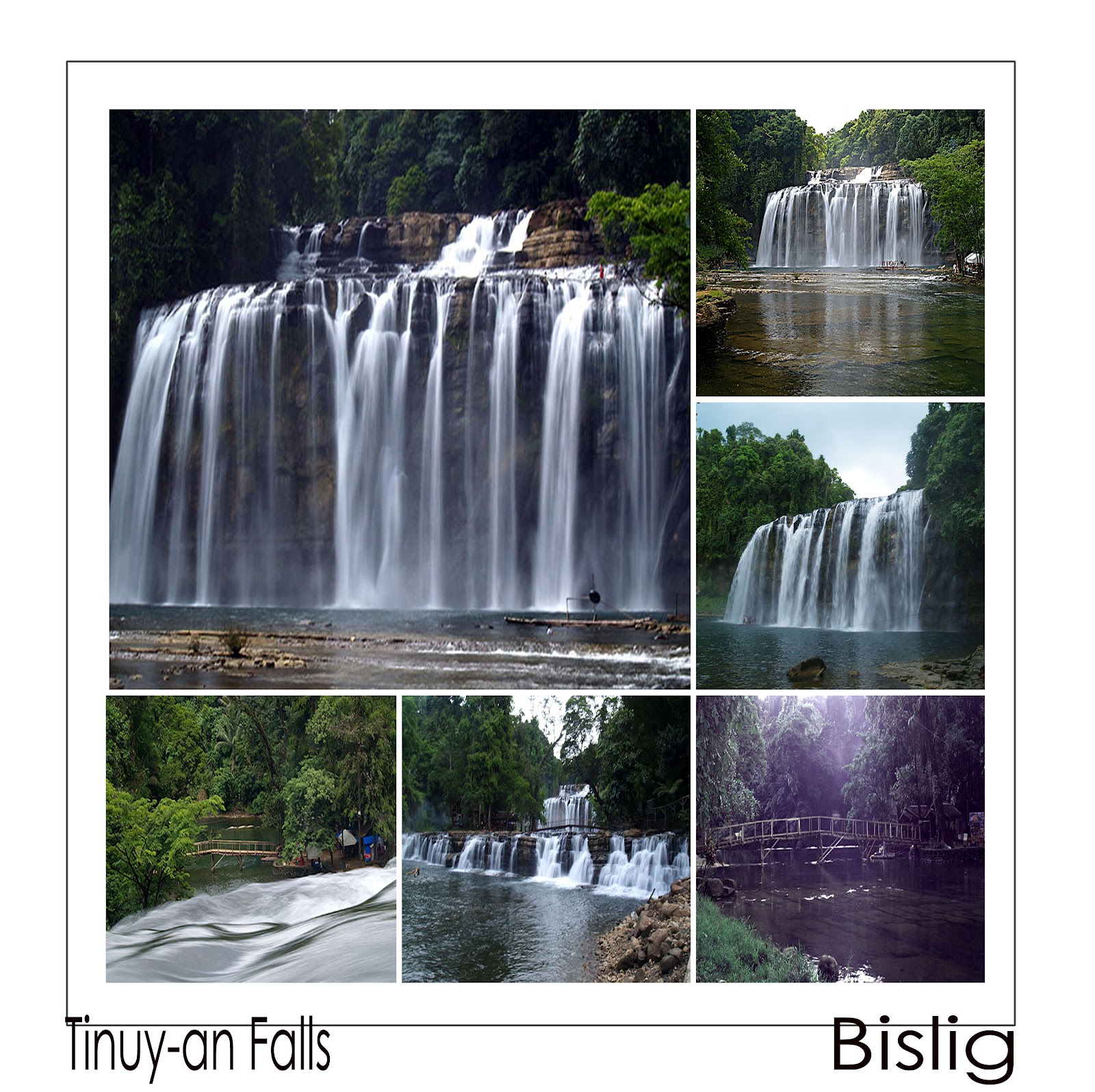 TINUY-AN FALLS We started our journey from Padada, Davao del Sur to Bislig, Surigao del Sur via Cuevas. It is the shortest route to get to Bislig, but the unpaved road held us from going full throttle thus it gave us ample time to appreciate the spectacular view along the mountain pass until reaching the eastern coast of Bislig. The falls is situated in Bgy. Burboanan which is about an hour ride through rough road and rustic scenery. The sound of the thundering water cascading down from 55m high directly surges the adrenaline. Its not just a tall waterfalls but is wide as well...95m, probably the widest in the country. Surrounded by thick rainforest vegetation, makes the place splendid and can hold one breathless.