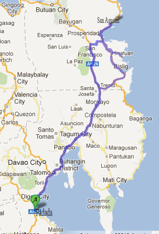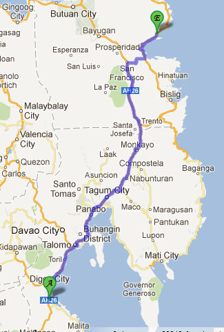 Approximated Distance : 268 km (Padada-Bislig)