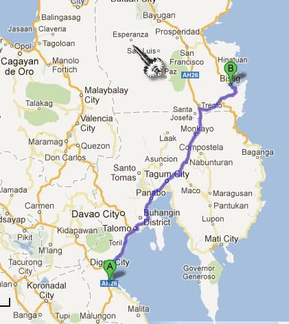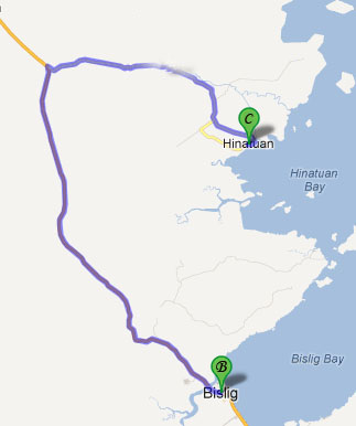 Approximated Distance : 47 km (Bislig-Hinatuan)